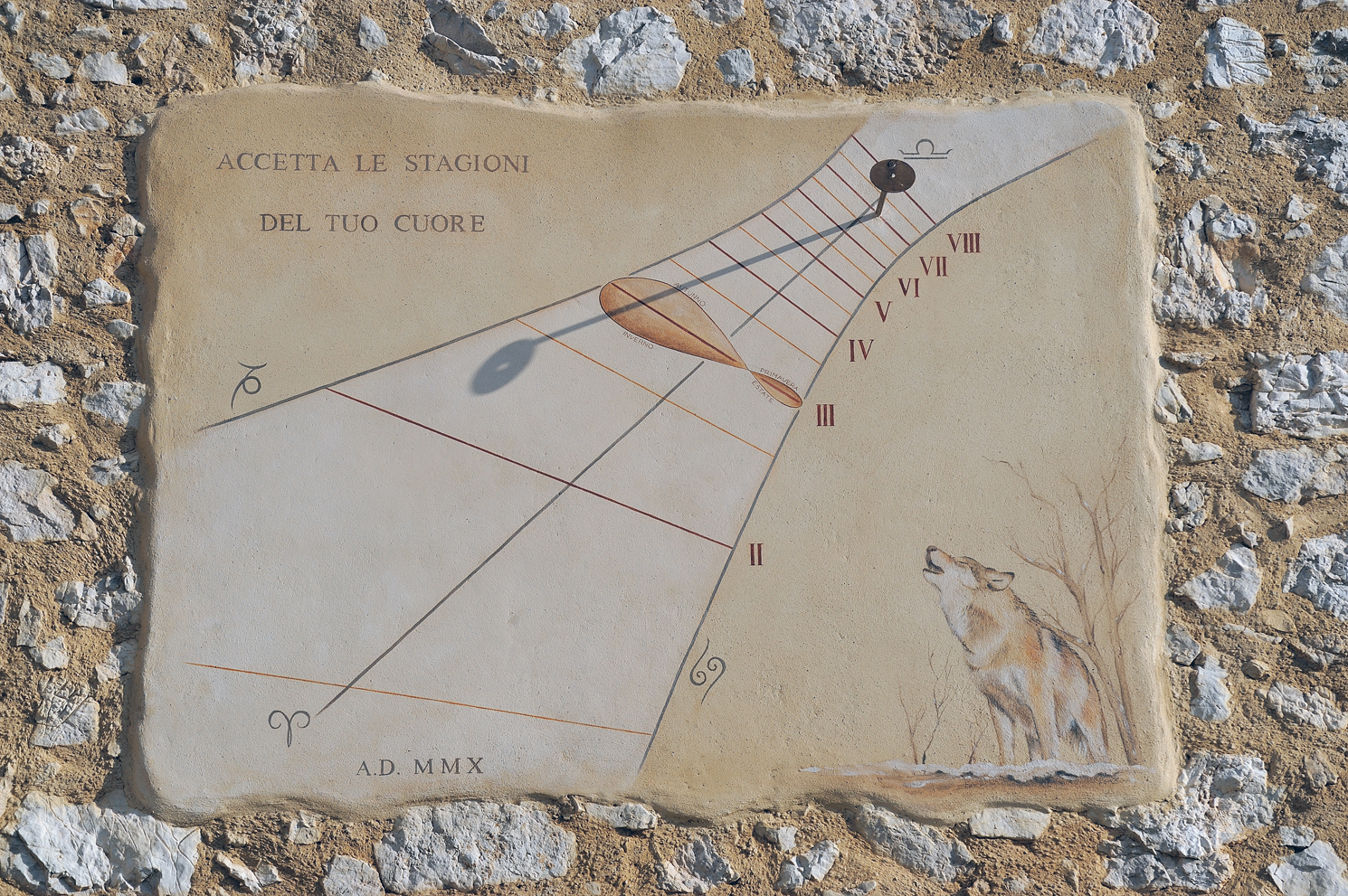 L’illustrazione che abbellisce la meridiana del Maggiociondolo è opera sua. Il lupo che ulula alle stagioni del nostro cuore è stato addomesticato dal suo tocco sensibile che ha saputo ammansire il suo spirito selvaggio e vagabondo.
