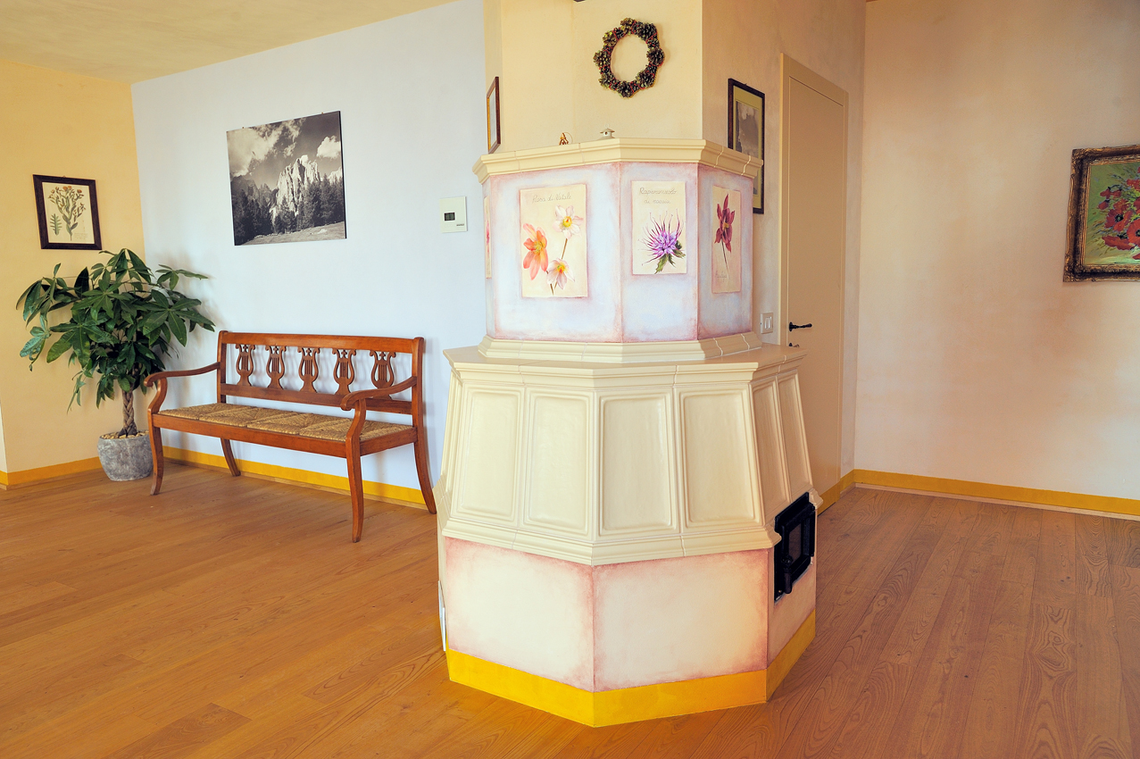 Dalle sue mani sono sbocciati anche i fiori che abbelliscono la stufa in ingresso. La sua energia si percepisce appena si varca la soglia della porta d’entrata: ci si sente accolti in un ambiente famigliare, caldo e ospitale.