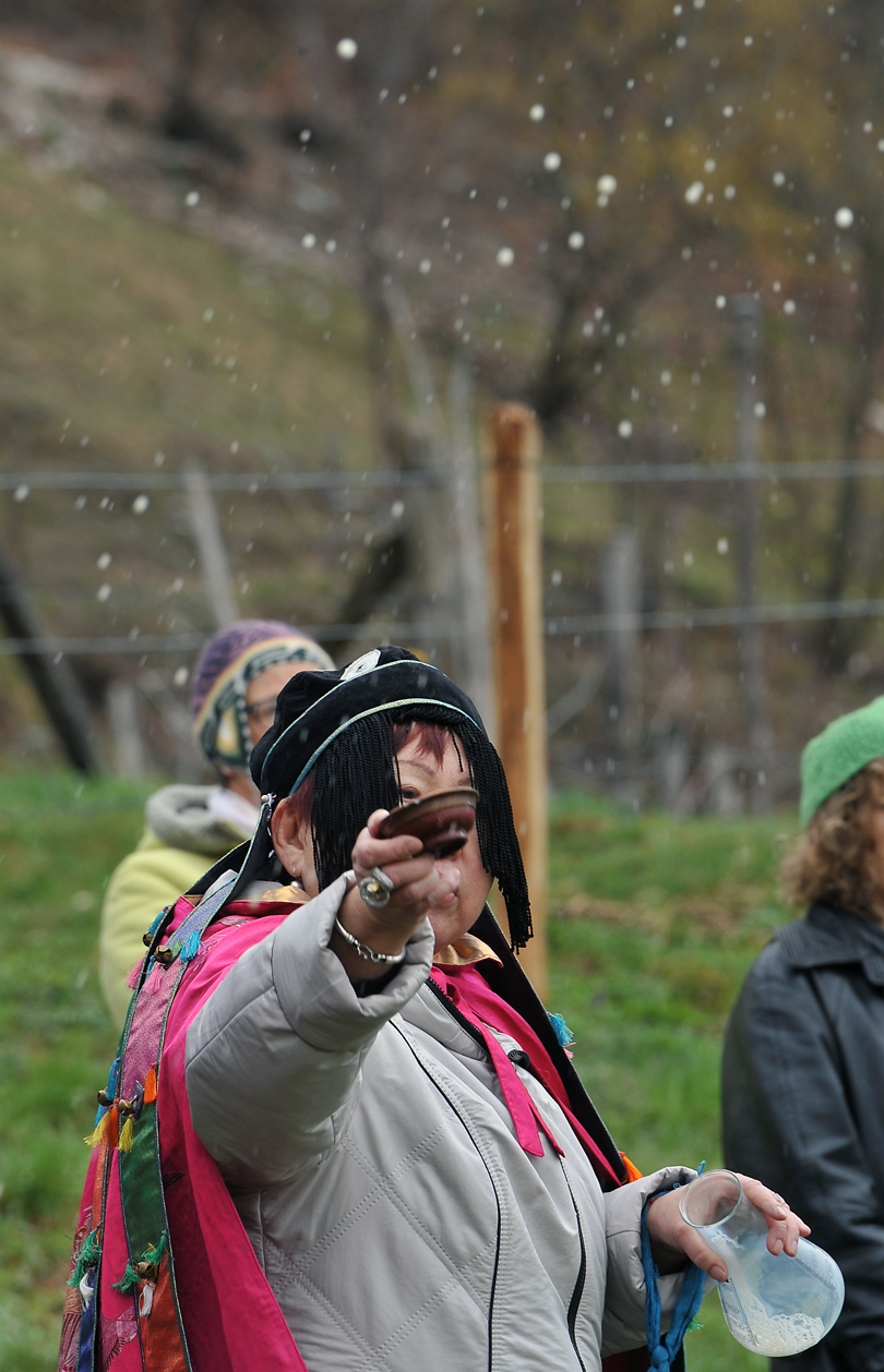 Ogni tanto alza il palmo della mano, lo rivolge verso il cielo e subito dopo lo ritrae, consultandolo come un tablet. E’ una sorta di sms divino che arriva direttamente dagli spiriti della montagna, che le danno le istruzioni su cosa fare. Lei è Nadia Stepanova,presidente degli sciamani della Repubblica di Buriazia, situata lungo la costa orientale del Lago Baikal, in Siberia. Una donna coraggiosa che ha saputo sfidare il regime sovietico, rivelando pubblicamente la sua pratica “clandestina” di sciamanesimo, a lungo proibita nella repubblica russa. L’altopiano del Tretto, ai piedi del Summano e del Novegno, è la prima tappa di una serie di seminari sullo sciamanesimo che terrà in Italia durante questa primavera del 2013. Quando rivela le sue “visioni” ha un’espressione quasi corrucciata: ma è solo un modo per dare forza alle sue parole, affinché tutto quello che dice venga preso con la massima serietà.