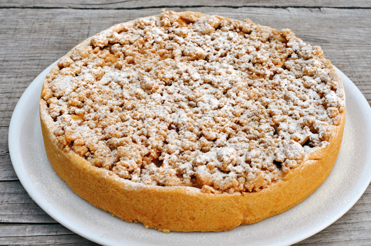 Ed eccola qua la torta di mele made in Maggiociondolo. Una dolce dal sapore delicato e poco zuccherato, per esaltare fino in fondo il sapore delle mele appena raccolte. Un ripieno semplice su una base di pasta neutra e una spolverata di streusel alla cannella per un sapore più rotondo con il brivido del croccante.